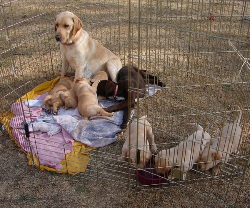 And of course Josie is right in the middle again...we have 3 pups nursing and 3 pups drinking water: